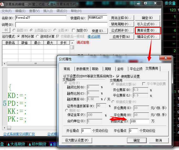 费率设置里把初始资金调大  费率设置 在那个地方调,我怎么没找到!