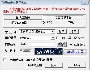 2,早盘登录,也就是7点以前(或者更早的时间,就是期货公司的柜台没有打开之前,其实一般期货公司7点40左右就开柜台了),启动软件