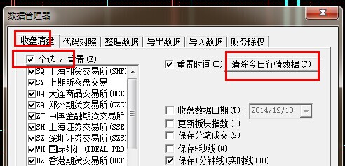 ctrl+d 数据管理器-》清楚今日行情 再连接行情服务器重新接收