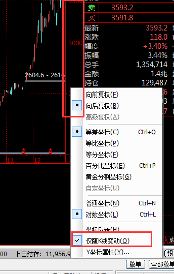 1,y轴(价格栏)右键菜单选择仅随K线变动