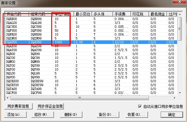 交易-》合约信息设置里 看下SQ市场品种的单位乘数都是1?