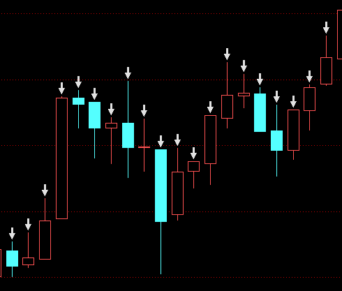 这种写法在图表程序化中是会出现白色箭头的,也是没有办法进行有效历史评测的,我们应该改成下面的写法: