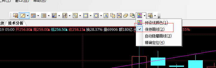 1.画线工具栏中,怎么把水平线设为默认画线?(我一般画深恶痛绝一,缺省是直线)
