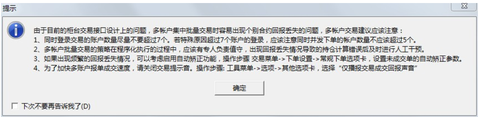 2、如果机构版同时登录的各个不同账户设定分别交易不同的品种,成交回报的丢失情况是否可有效改善