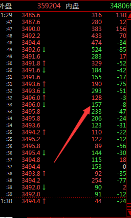 红色    "(主动买、外盘)卖一价成交"     仓差是负   则空平