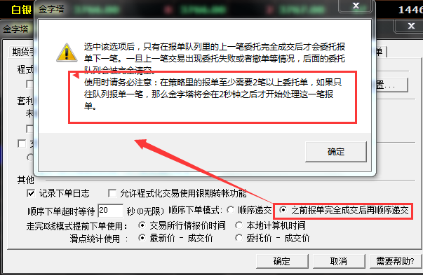要延迟2秒才能委托,是你说的顺序下单,得第二种方式下的,如下图