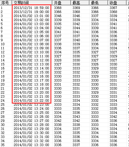 如图,今天第一天用金字塔软件,下载了2014-01-01至今天的1分钟数据,结果发现时间错位,请问是为什么?