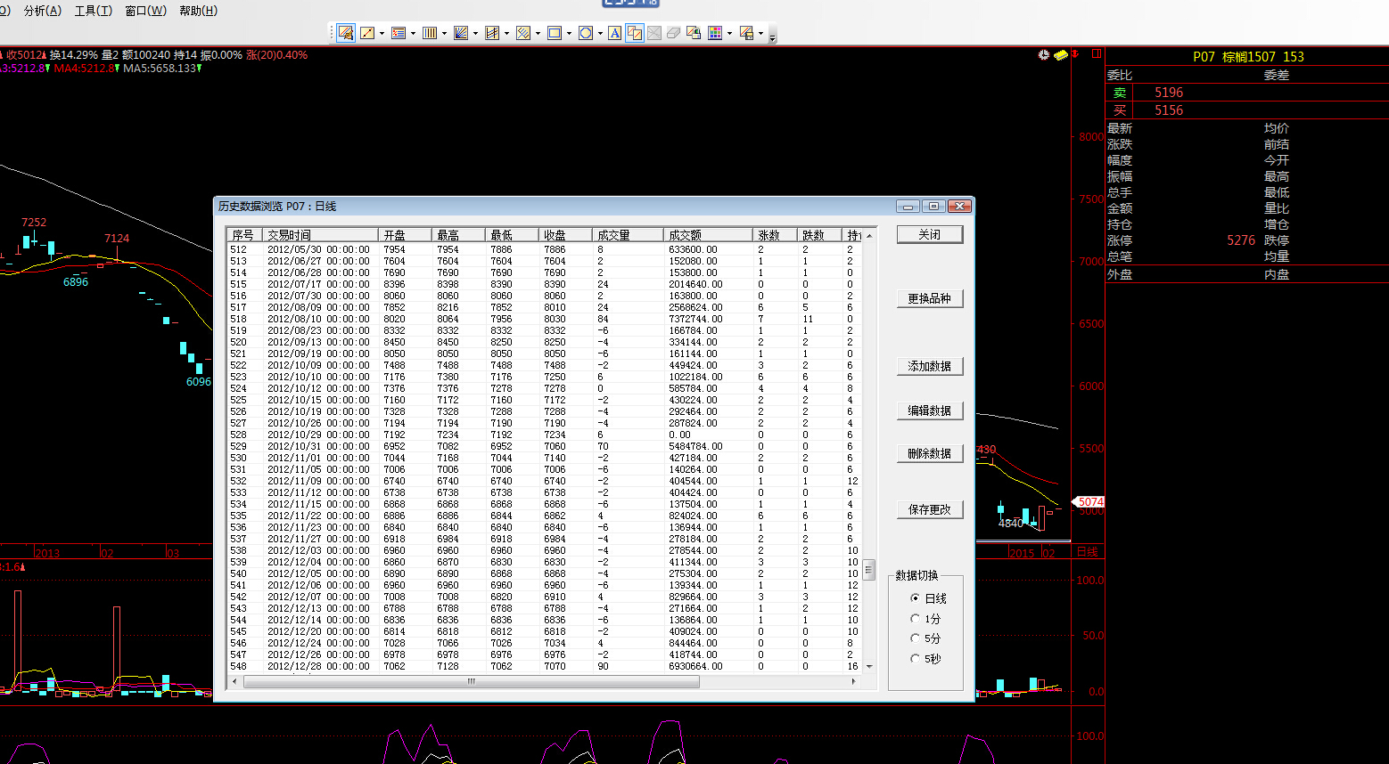 P07合约,2013.7.30日的成交量,持仓量我自己修改了一下,你们看看服务器上的数据