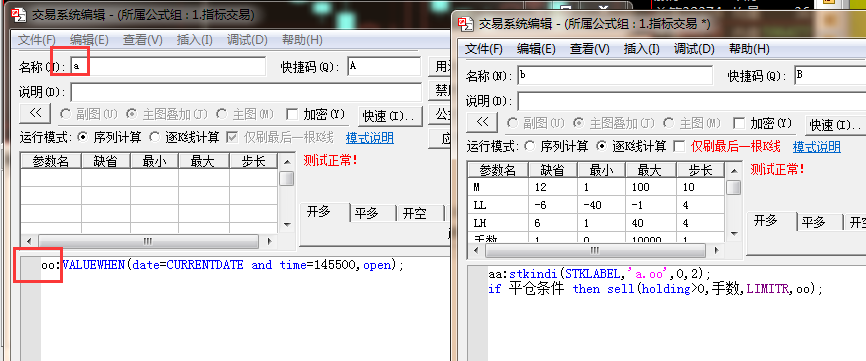 aa:stkindi(STKLABEL,'a.oo',0,2);//调用5分钟周期14:55的开盘价