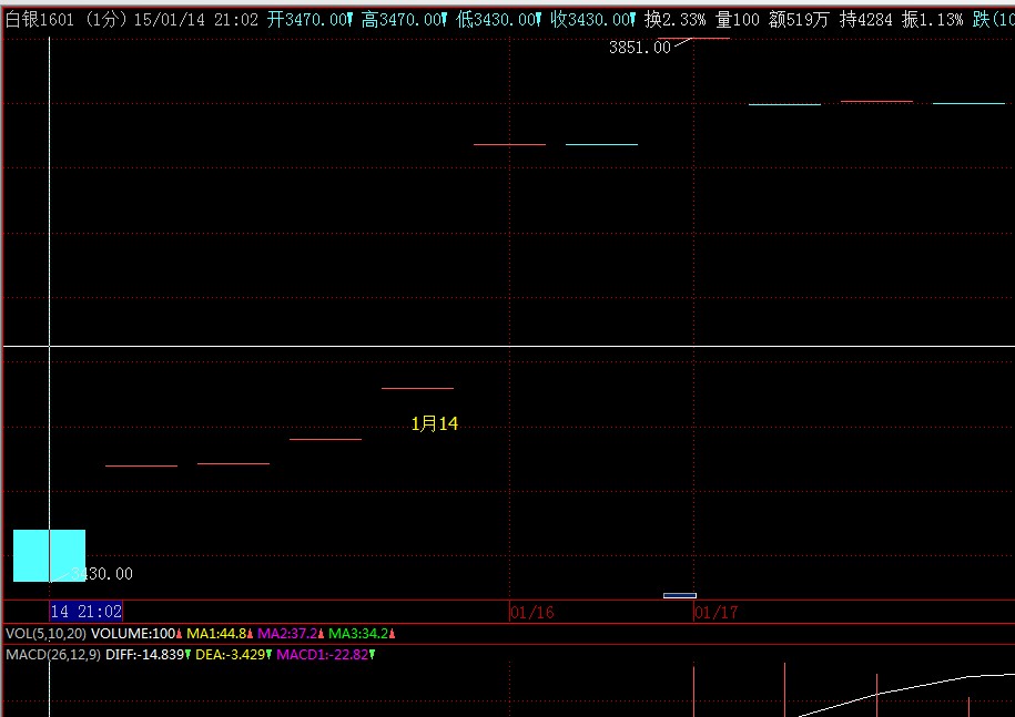 ag01成交量很小的,软件对成交量为0的k线默认不显示
