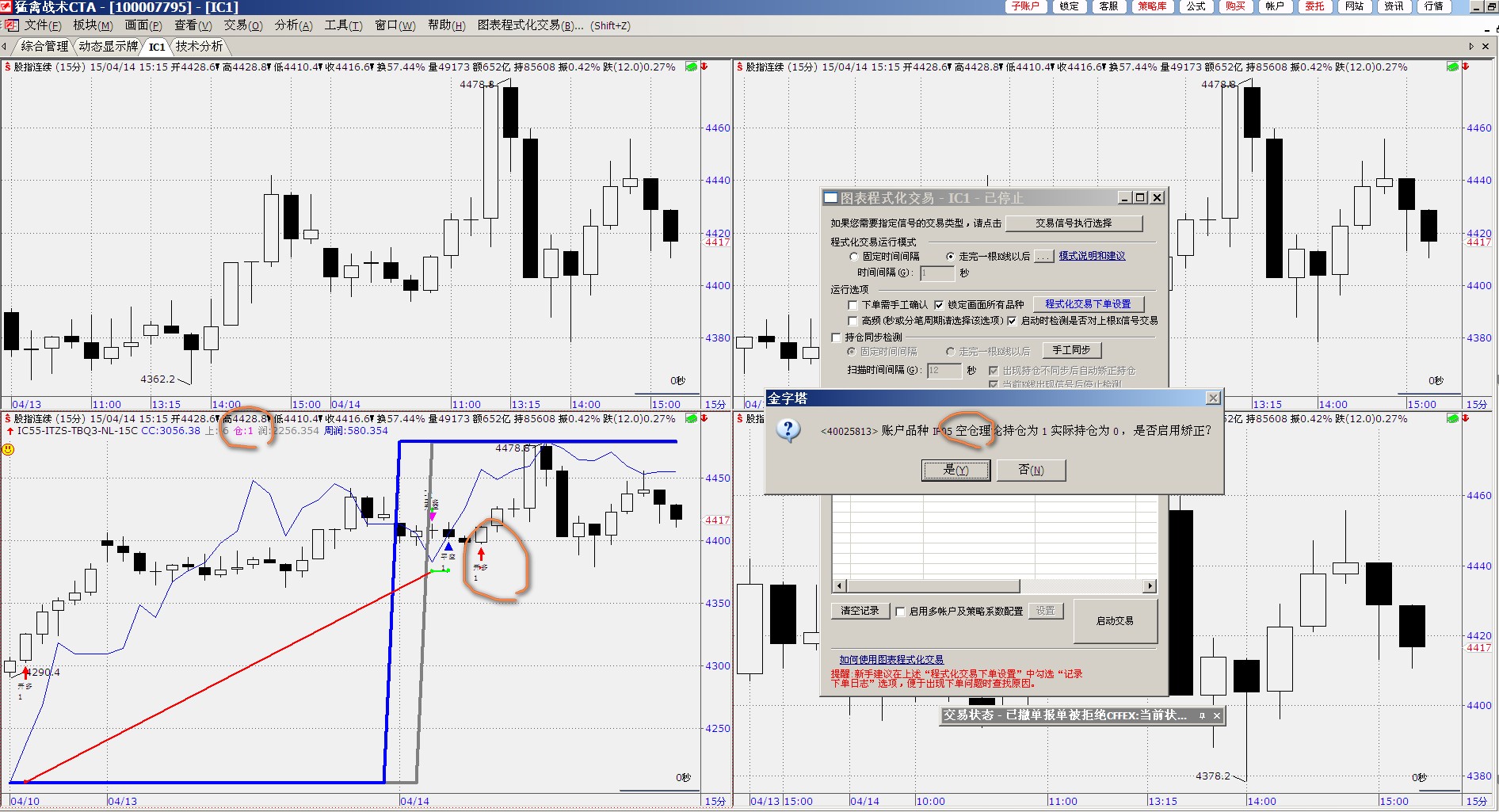如图,明明我的图表模型显示的是持多,我一点手工同步,告诉我是空头。。。