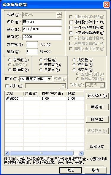 我用沪深300指数,又做了一个自定义指数,见图