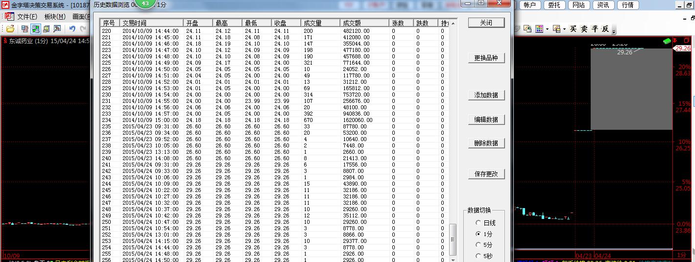 金字塔客服中心 - 专业程序化交易软件提供商金字塔软件金字塔软件问题提交 → 一分钟数据部分缺失