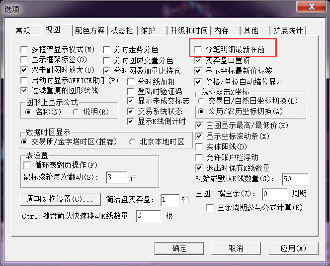 下单窗口中《成交明细》序号,最新成交默认是1,如何设置成最大号。