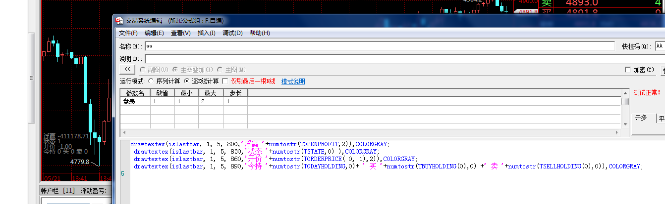 drawtextex(islastbar, 1, 5, 890,'今持 '+numtostr(TODAYHOLDING,0)+ ' 买 '+numtostr(TBUYHOLDING(0),0) +' 卖 '+numtostr(TSELLHOLDING(0),0)),COLORGRAY;