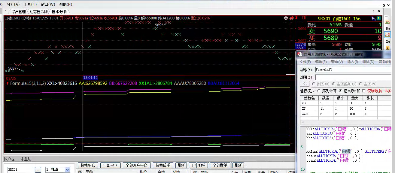 正常开启软件正常刷新结果如下,白糖和白银就是你给的那份设置的自动刷新。从分笔图也能看到数字在叠加一直