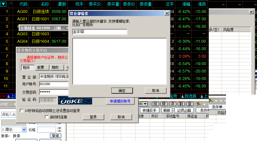申请模拟账户在选择营业部时候检索不到金字塔模拟交易。选择其他期货公司的申请的账号,登陆期货交易平台就在交易状态就提示已断开。查看账户资金全部都是0,请问有碰到这种情况的人员吗或者是知道怎么解决的吗,新手求救?