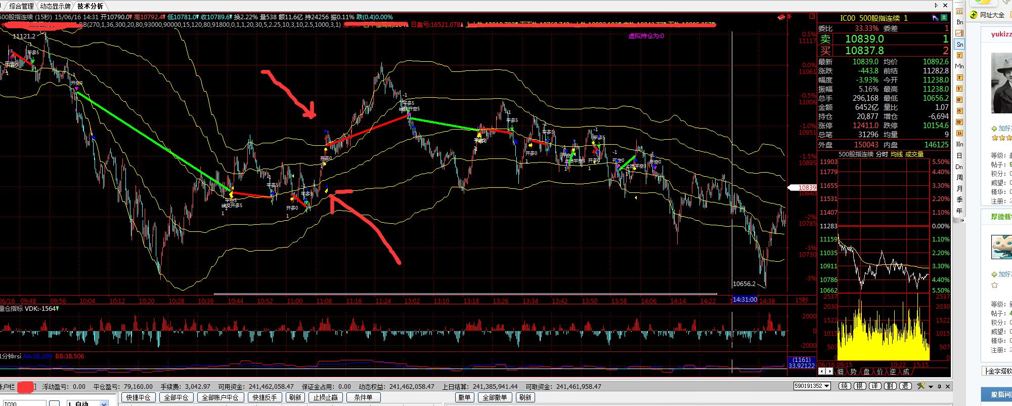 我上面箭头指的是理论开多位10930 ,但实际成交 竟然在下面10830开多,当时的时间点是完全不可能成交的
