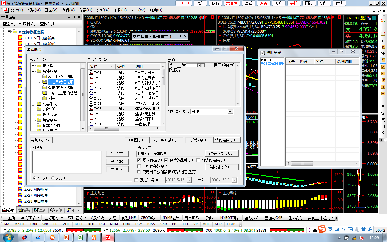 选股,添加了选股条件, 连上了行情服务器, 但无反应, 求解。
