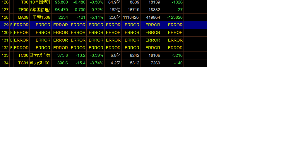 在动态显示牌上,选择多个品种,按住鼠标左键拖动并上下移动位置,不定期多次移动,就会出现ERROR错误,