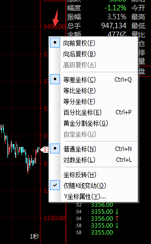 1.在价格坐标轴上面有个“回”字型图标,点击就可以放大。