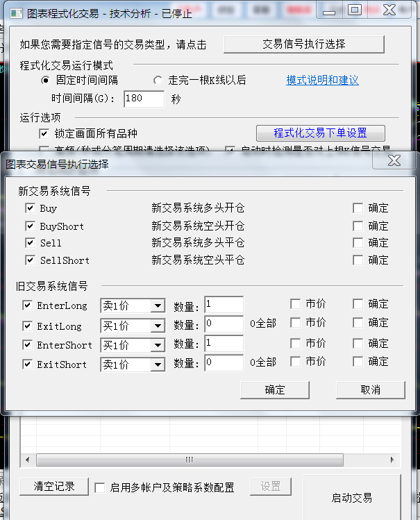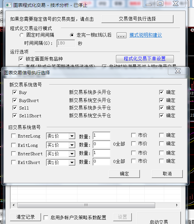 打开图表程式化-交易信号执行选择-新交易系统信号-选择需要手动确认的下单指令