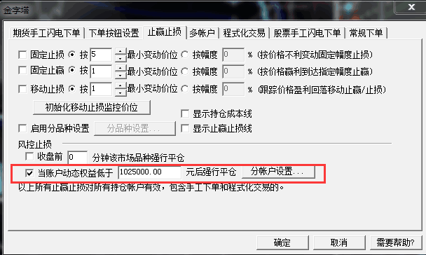 6楼 图中红色选择的是风控止损,也是属于止损功能。
