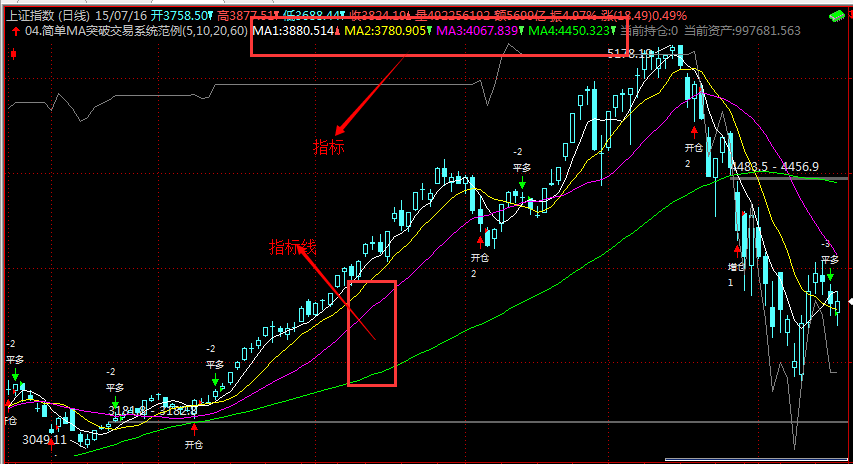 图中四个ma指标颜色和它对应的指标线的颜色是一样的