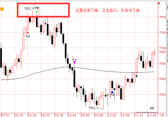 图表默认会先对报单价格进行检查,如果价格不在K线范围内则定义为无效下单