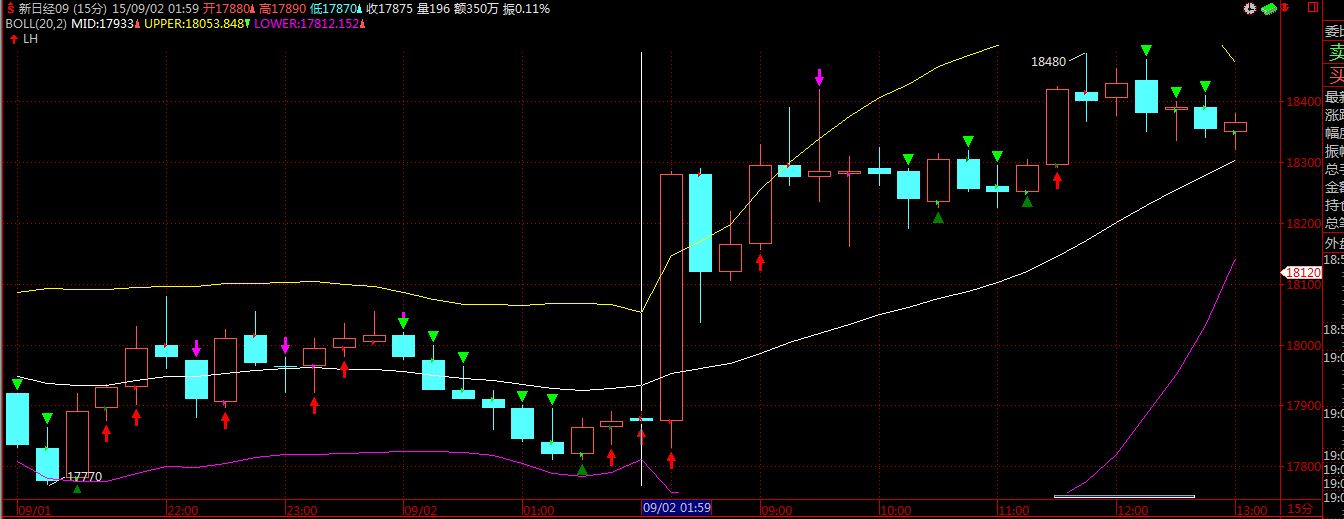 我截的15分钟图,9月2日凌晨2点收盘价格是17875,当时给出的交易信号是开空