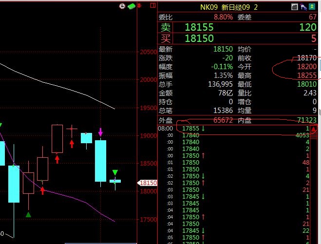 同样的情况,命名为“开盘价”的截图中,开盘价是18200,但分笔成交栏里8点第一个价格是17855