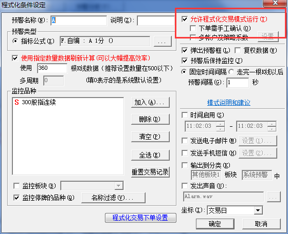 本地预警直接选择后台交易模型,提示“交易无效,如果你需要程式化交易运行此公式,请关闭此公式对话框,然后在上一步的“程式化条件设定”右上方选择………………“,请问是怎么回事,我需要如何修改后台交易模型才能用于本地预警?