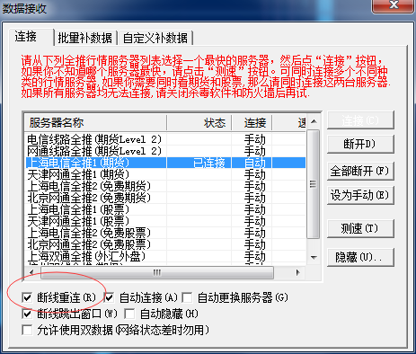 自动指的是你打开行情接受后,他自动去连接这个服务器。否者你打开软件自己需要手动选择服务器做连接