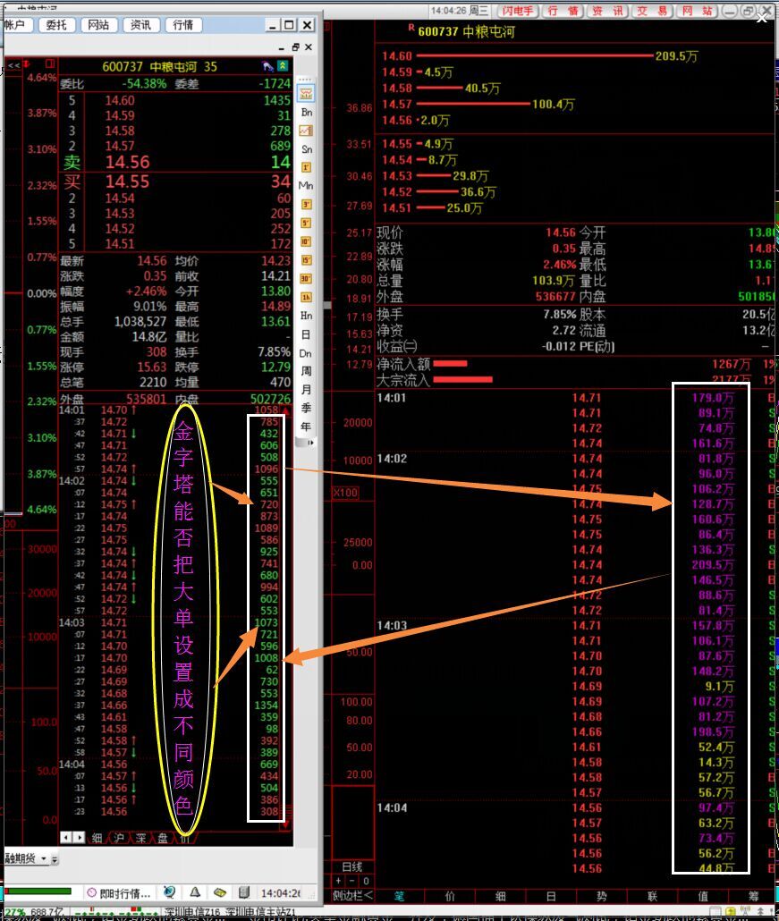 主题:金字塔能否把大单设置成不同颜色