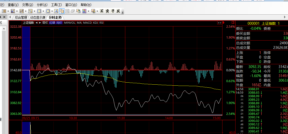 喜欢用金字塔同时操作股票和期货品种,但是上证指数无论简单分时走势还是带指标分时走势都没有象其他软件那样可以同时看到黄白两条线,请问该如何处理才能同时在带指标分时图上同时看到黄白两线?
