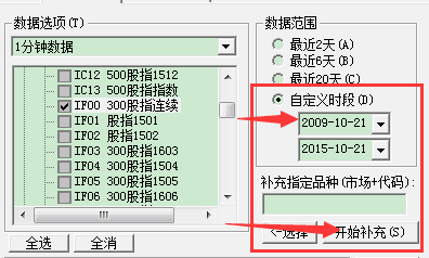 你需要分段补充数据。下载数据一次最大数量为10万根。IF00一天是270根1分钟数据,一年工作时间按照250天计算。大概也就只能下载一年半的数据