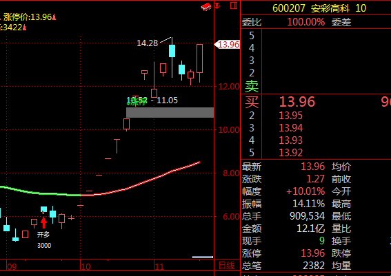 请看上图左上角,变量输出为13.96,与右下角的涨停价相等的啊。