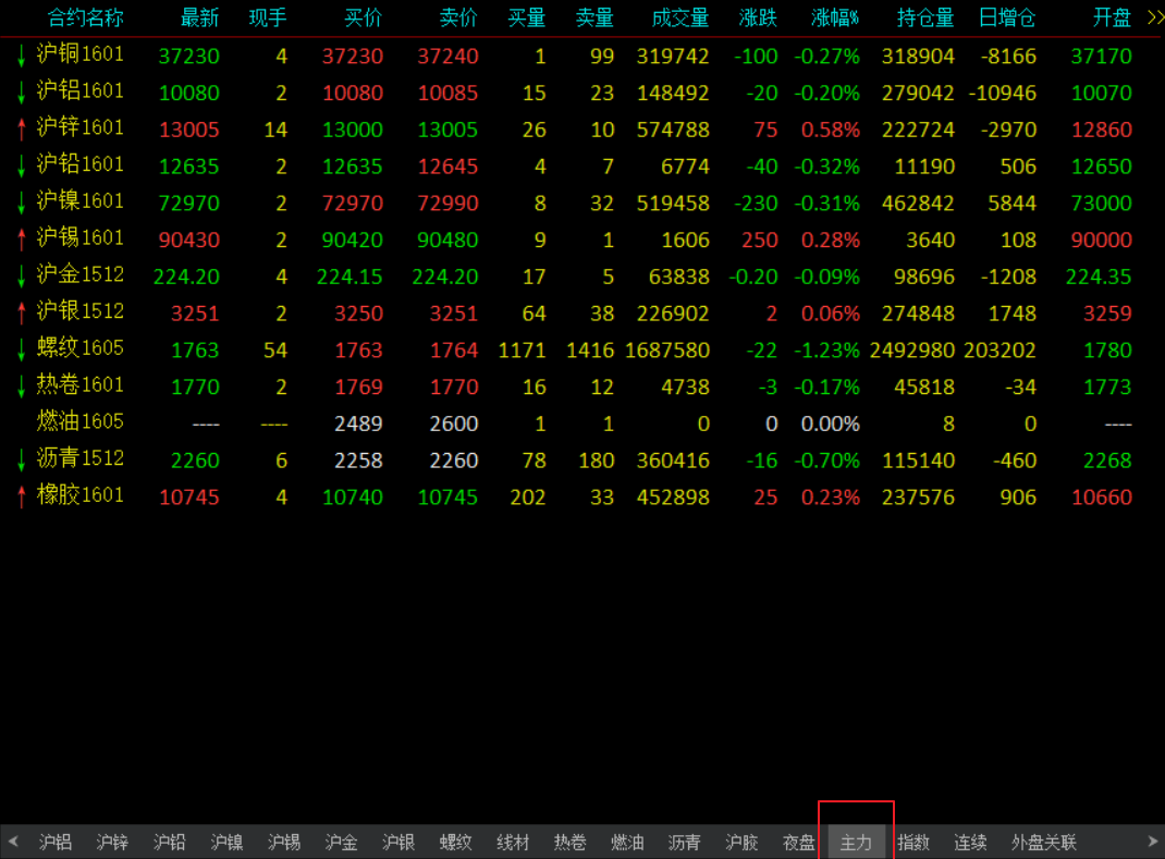 另外,“wenarm”的方法是可行的,但很麻烦啊,要一个品种一个品种的去对比。下面是文华财经的主力合约板块,一目了然。