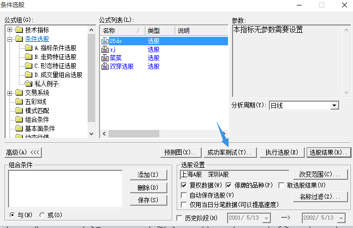 成功率测试  的时候,无论怎么设条件,在x64的版本中有个  “双向交易” 灰色的默认被选中,系统报“条件无效”错误。无法进行下去。