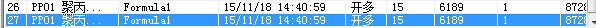 2015-11-18 14:40:59.566    【下单】PP01 价0.000000 量15 买卖0 类型1 开平2 账户8728097 Formula 1