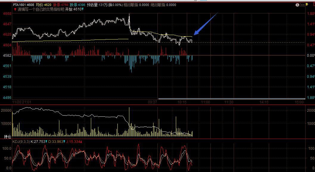 这两根指标线,一个是PTA1601:4608,另根指的是你的公式中的开始:4610.