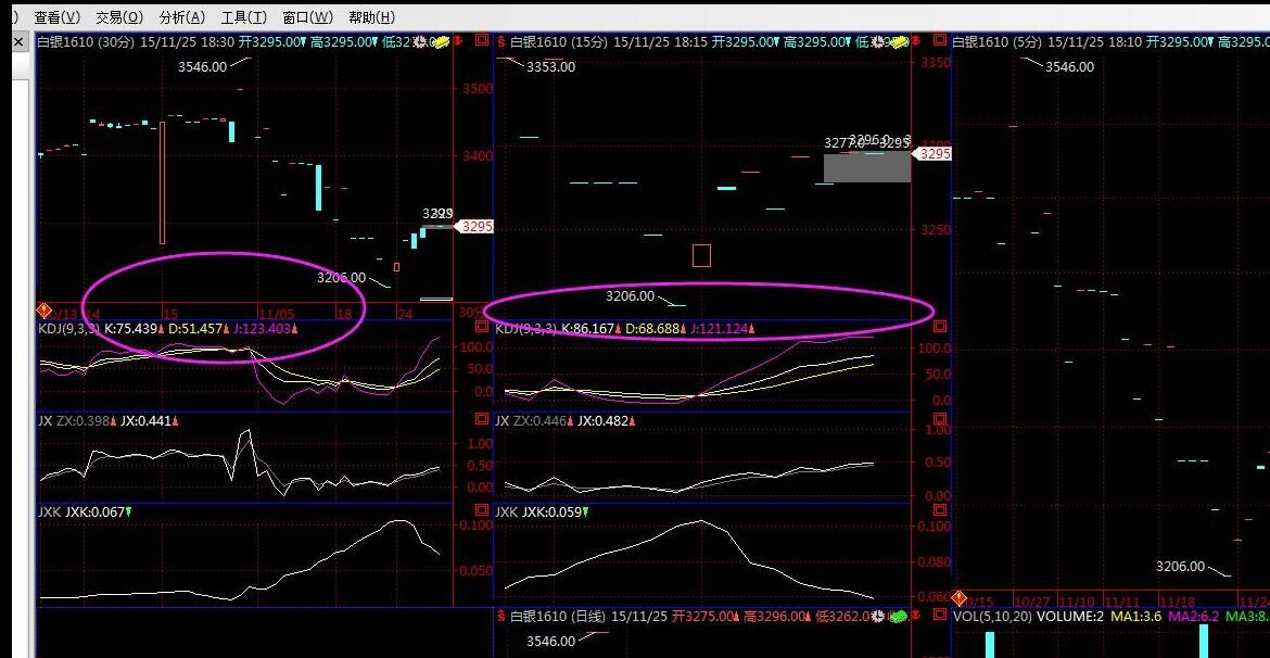 搞错了,不是KDJ的问题,是左边周期底下有一排日期,右边的没有,怎么调出来啊