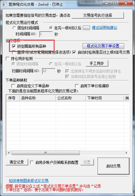 在启动图标程序的时候 ,顺带勾上  ‘锁定画面所有品种 ’即可。