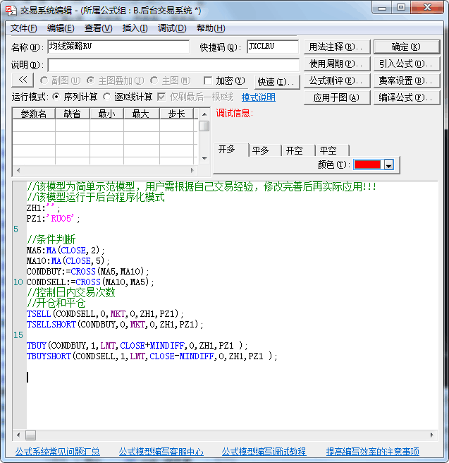 模型就是简单的均线交叉开平仓,用这个交易频繁的模型来看看后台交易如何