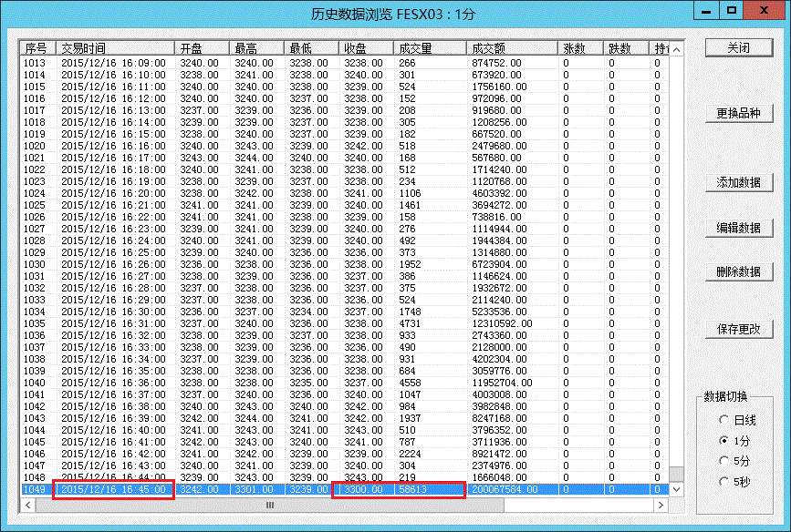 内盘不清楚,对于外盘品种,需要过滤掉一些垃圾时段。例如我把市场收盘时间和过滤中的结束时间都设为12点,到了12点后,分时K线是不再增加了,但行情依旧接收,导致日内最后一根K线一直没停止更新(波动范围很大、成交量非常大,因为他实际上包含了很长的交易时间)