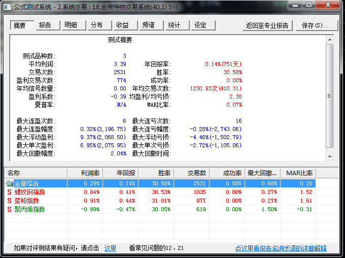 图片点击可在新窗口打开查看就用系统自带的金肯特交易系统测试,品种为螺纹聚丙烯菜粕,参数用系统默认,时间为2014年1月1日至2016年1月22日,5分钟周期。但是专业版测试最大回撤0.36,点一下切换到简易报告,却显示为0.68。请问这是什么情况?所有的讲解说明我都看过了,以前也有人提这个问题,但实际也是不了了之而已。感觉金字塔的测试系统还是存在很多问题啊,请各位老大给个明确说法吧。图片点击可在新窗口打开查看 图片点击可在新窗口打开查看