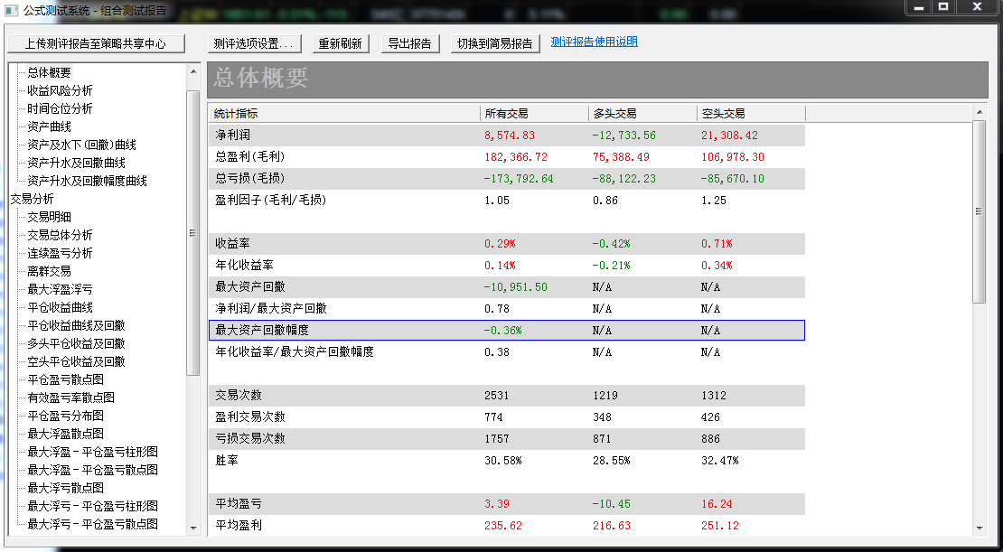 普通测试报告由于历史原因无法正确统计所有品种的综合回撤收益,只能做简单平均的