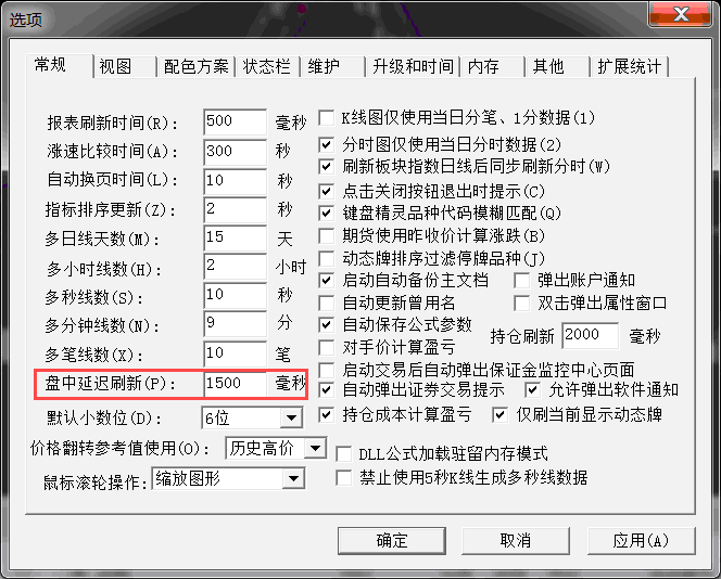 那应该把盘中延迟刷新改成多少毫秒? 我希望闪电图能正常的1个tick1个tick显示