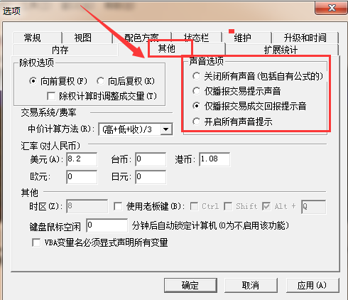 我前几个月无意中关闭了成交音,成交回报音,现在想调回来,可是找了很久很多次都找不到.谁能告诉我在哪里调回来?谢谢