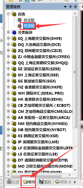 管理面板-》板块里自选股  右键导出板块,导入时要用和导出一样的格式
